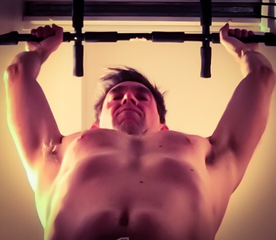 The next basic move has to be the pull-up. I like to add a leg raise, aiming to get the legs parallel to the floor as the arms pull the chin to the bar.